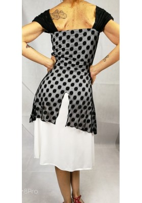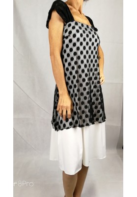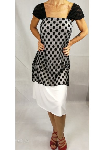 Viscosa elasticizzata e tulle elasticizzato a pois.