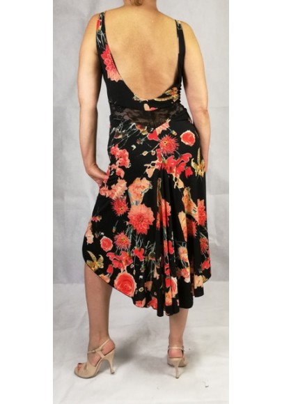 Elegante e femminile l’abito con profondo scollo dietro il corpino sottolineato da una fascia di pizzo. Lo spicchio dietro dà morbidezza ai movimenti.